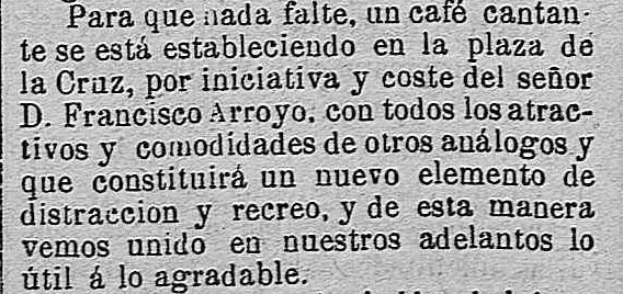 Los más pudientes alternan en el casino o en el “café cantante” de Francisco Arroyo en la Plaza de la Cruz.